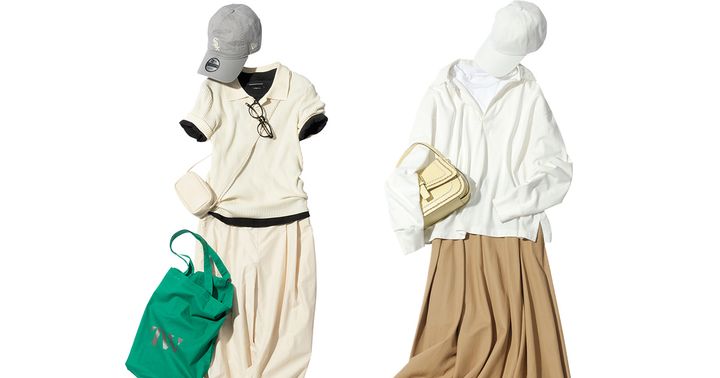 GUの品のいいロゴなしキャップがどこかトラッドなキレイめコーデにハマる