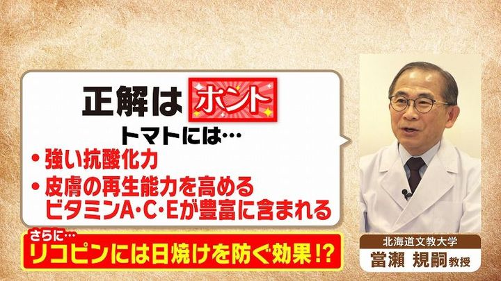 60代:「本当かな。トマトは食べると結構冷えますよね。体も冷えて日焼けはしにくくなるのかな」