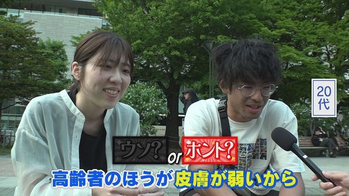20代女性:「本当です。高齢者のほうが皮膚が弱いから。(高齢者のほうが)シミが多いっていうのはあると思います」20代男性:「僕は日焼けていますけどシミはできていないので」
