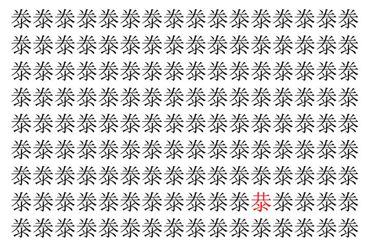 【脳トレ】「𣳾」の中に紛れて1つ違う文字がある!?あなたは何秒で探し出せるかな??【違う文字を探せ!】