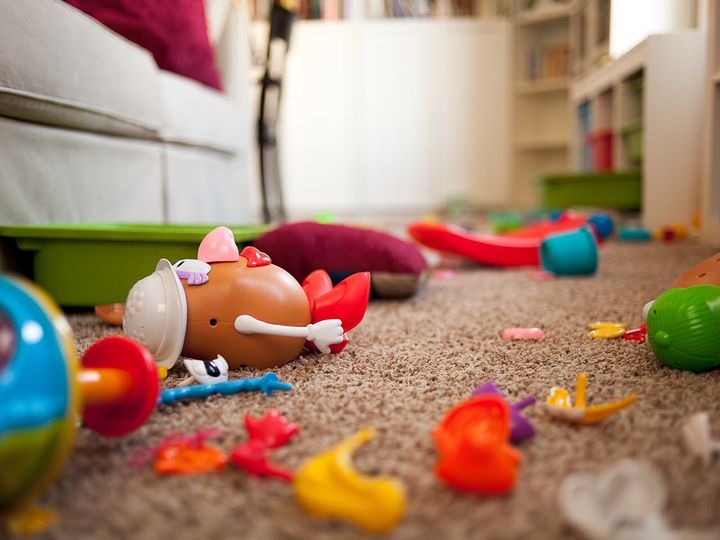 床に落ちたブランケット。開きっぱなしの絵本。山積みになったたたむ前の洗濯物に、足の踏み場もない状態のリビング。