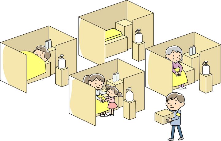 多くの人が集まる避難所では、定期的に窓やドアを開放して、空気の入れ替えを行うことも大切です。