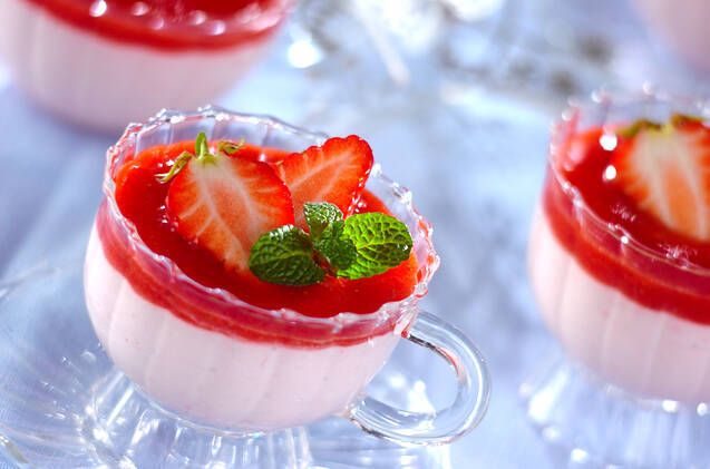 卵白のメレンゲとイチゴのピューレで作る、ふんわり軽いムースです。ほんのりピンク色で見た目も華やか。食後のデザートにもおすすめです。
