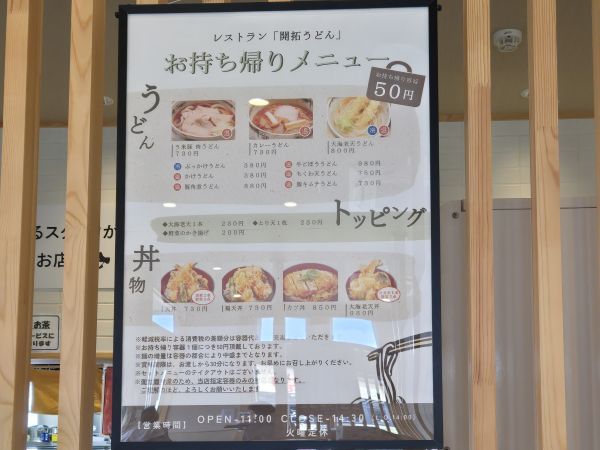 スリッパを借り、となりの開拓うどんに移動しカウンターに半券を出す。