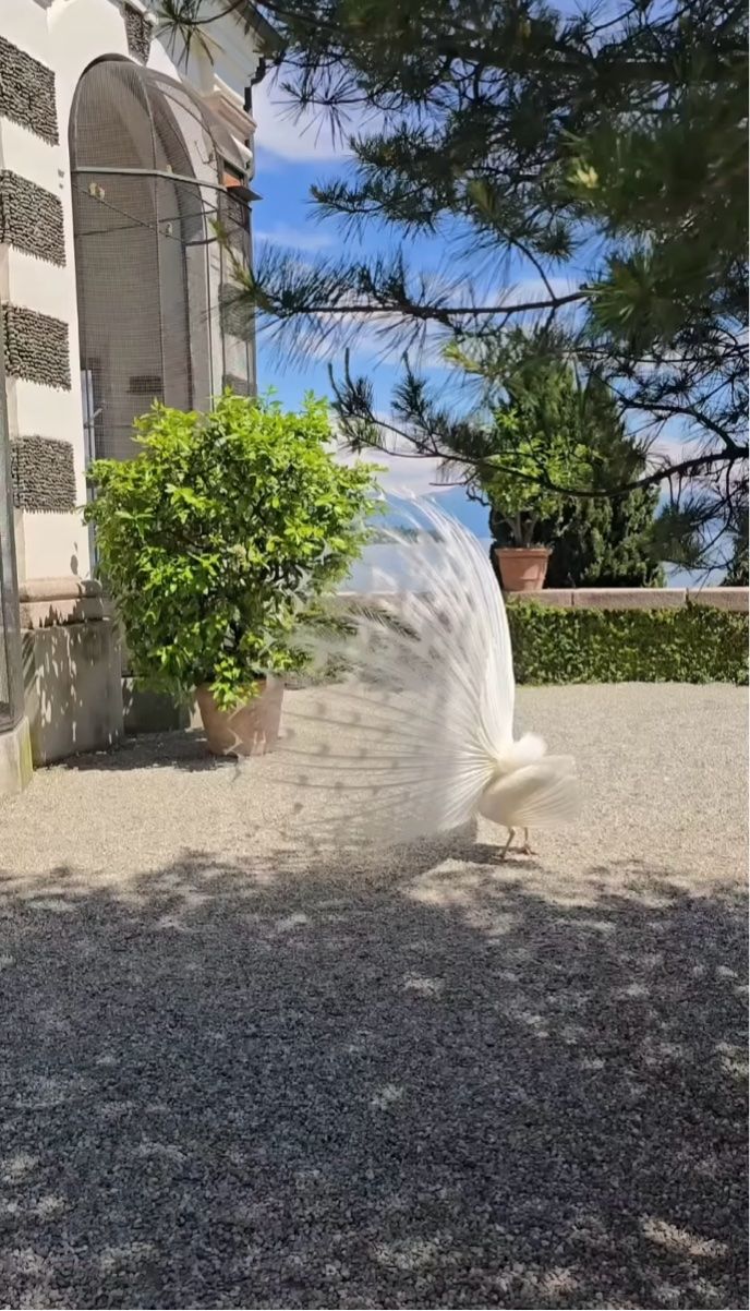 神秘的な白いクジャク。華やかな羽を広げた姿が美しすぎる!!【海外・動画】