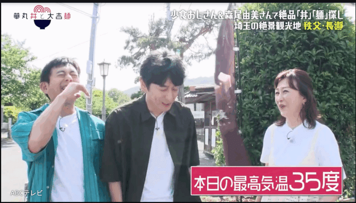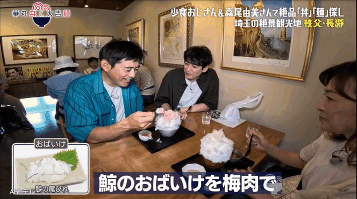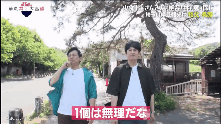 少食おじさんの博多華丸・大吉が、ただただ食べたい丼か麺を探し求める街ブラ番組『華丸丼と大吉麺』(ABCテレビ)。埼玉県〈秩父・長瀞編〉の最終章で、華大の2人はゲストの森尾由美と超有名かき氷店で合流、丼麺を探す前に絶品かき氷を満喫したが……。