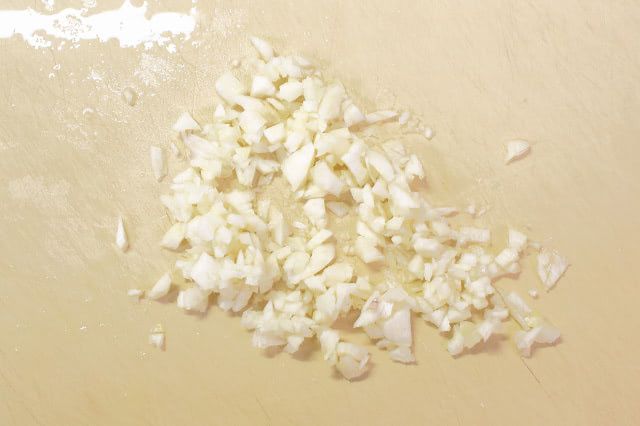 にんにくは生のまま加えるので、芽を取り除いて出来るだけ細かく切りました。