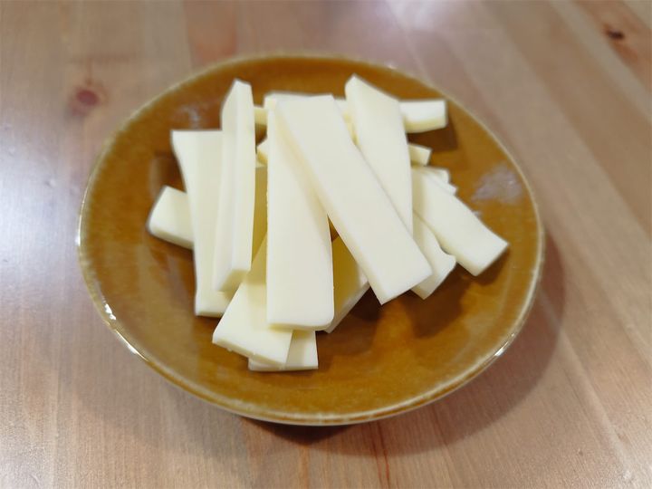 わたしは、最初から5mmにスライスされているチーズを使いました。半分にするだけなので、便利です♪