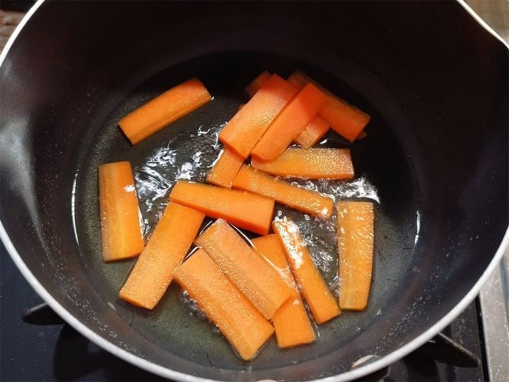 2. にんじんを[A]の調味料で5分煮て、冷ましておく。