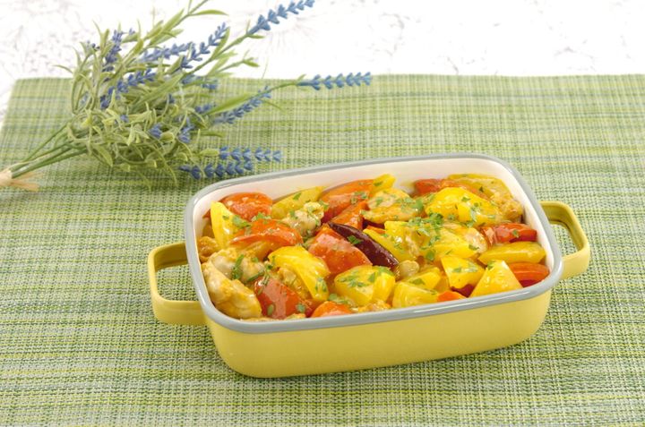 テーマは「パプリカ&ピーマン」。パプリカの彩りも鮮やかな、暑い季節にうれしいさわやかメニュー「パプリカと鶏のマリネ」を辻調理師専門学校の紫藤慧先生から教わった。