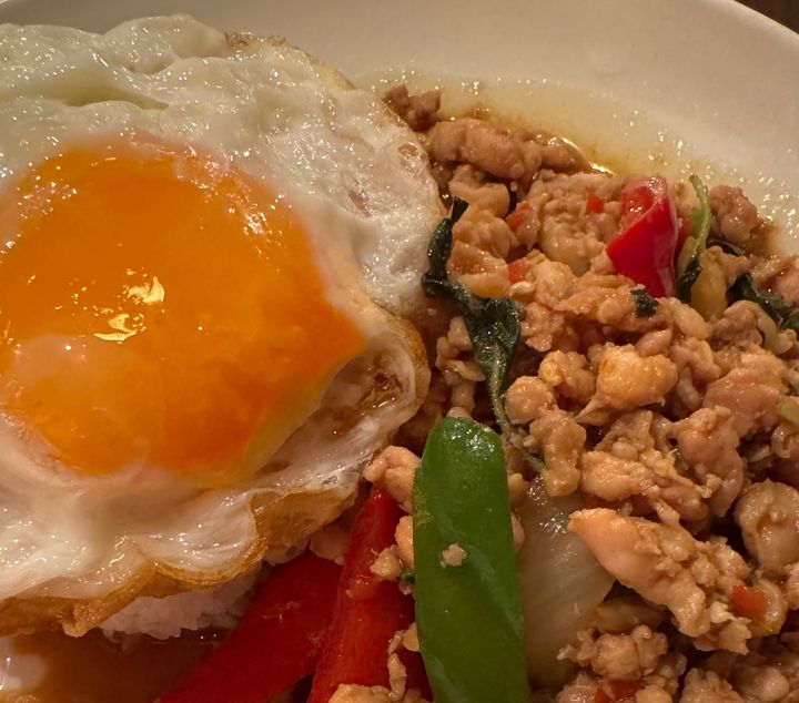 ガパオのお肉の大きさは、お店で様々なのだが、こちらのお店はごろっと大きいタイプ。これが私の好みにドンピシャだった。