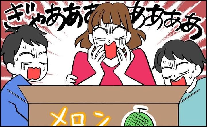 大きな段ボールに「メロン」と書いてあったので、なんの疑いもなく開封すると……中には、メロンよりも大きな「黒い虫のようなシルエット」が見えたのです。私は思わず声を挙げて、子どもたちも「ギャー」とその場から逃げていきました。
