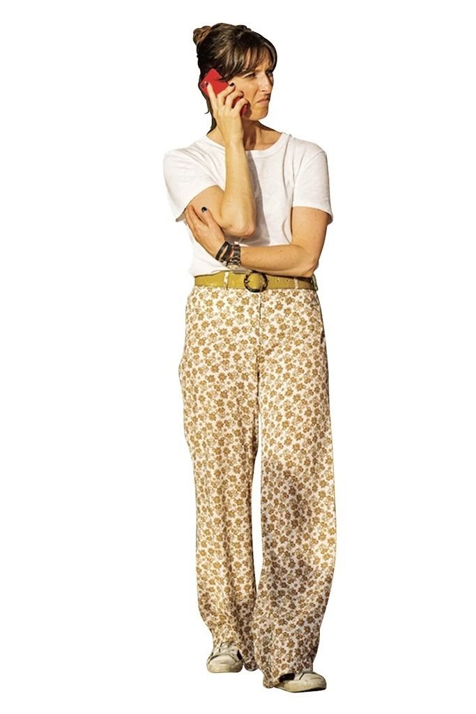 ヴィンテージライクな花柄を使い、コンパクトな白Tをフレンチシックに引き寄せ。落ち感のある素材を選ぶことで、レトロな柄パンツもエレガントなイメージに落ち着く。