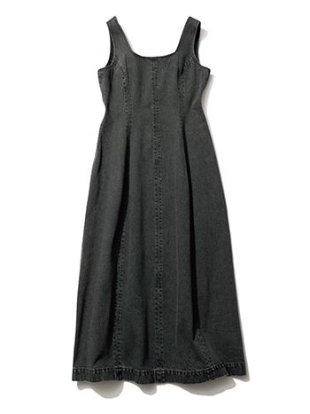 デニムワンピース/ロンハーマンメリハリのあるシルエットのデニムワンピは、脱力感と品のよさを両得。スクエアネックが素肌をヘルシーにデコレーション。