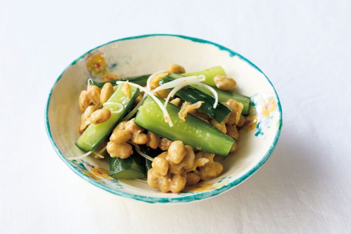 納豆ときゅうりと桜えびの浅漬けを混ぜて、晩ごはんのもう一品に。お好みで、納豆のたれを混ぜてもOKです。