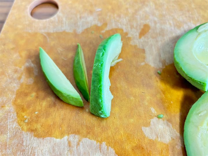 ちゃんと入るかなと不安でしたが、アボカドは柔らかいので意外とスムーズに詰めることができました。