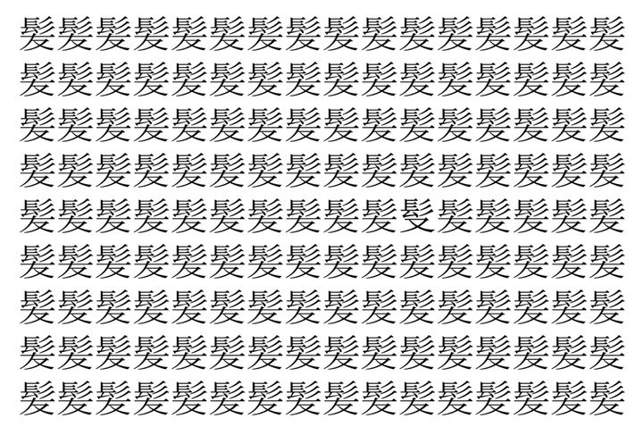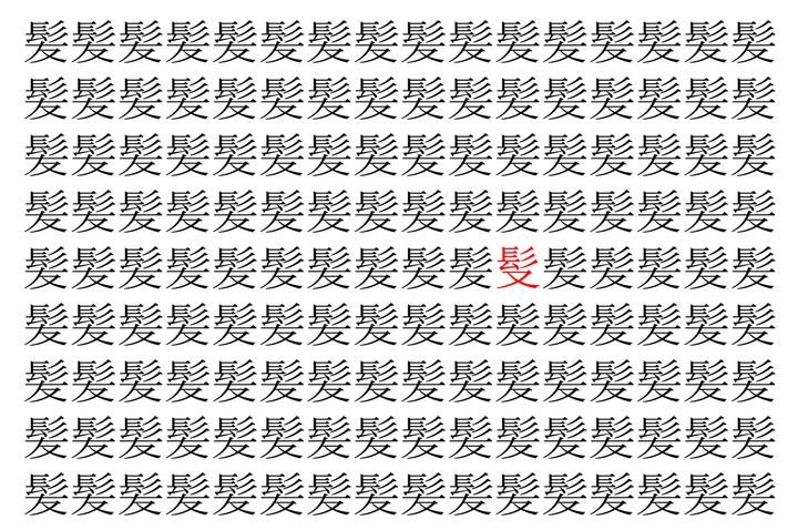 【脳トレ】「髪」の中に紛れて1つ違う文字がある!?あなたは何秒で探し出せるかな??【違う文字を探せ!】