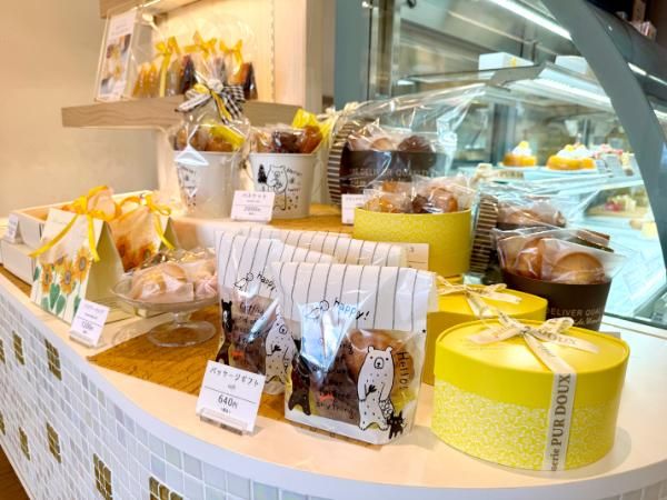 くまのイラストが描かれた袋やバケツ、黄色が印象的なギフトボックスなど、どれもパッケージが可愛くて思わず手に取りたくなります。価格は640円からと手頃で、ちょっとしたプレゼントやお持たせ、自分へのご褒美にもぴったり。シーズンごとにラッピングが変わるそうなので、集めたくなる楽しさもあります。