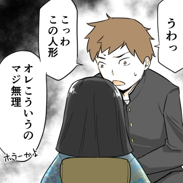 すると、「うわっこっわ!この人形、オレこういうのマジ無理!ホラーかよ」といちまさんを見て文句を言う彼。