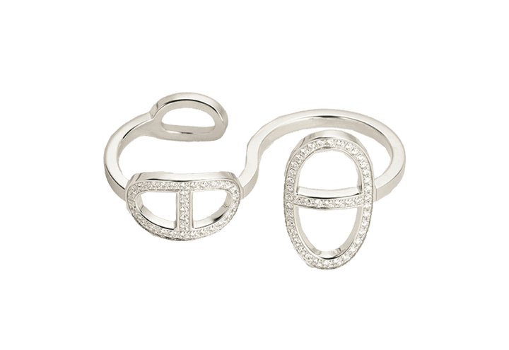ダブルリング:〈シェーヌ・ダンクル・コントゥール〉[WG×DIA]¥1,870,000(エルメス/エルメスジャポン)