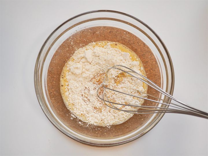 3. 2に薄力粉を加え、ダマがなくなるまでよく混ぜ合わせる。