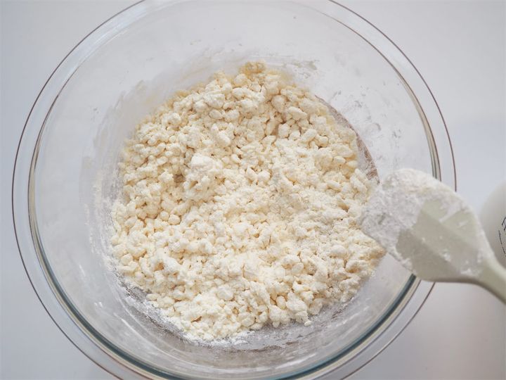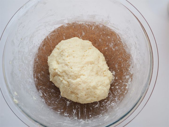7. 6にホットケーキミックスを加えて混ぜ合わせ、ある程度まとまってきたら、手で粘り気が出るまで捏ねる。