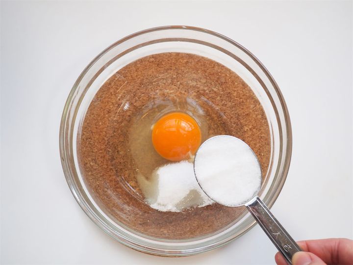 2. 耐熱容器(ボウル)に卵を割り入れ、グラニュー糖を加えてよく混ぜる。