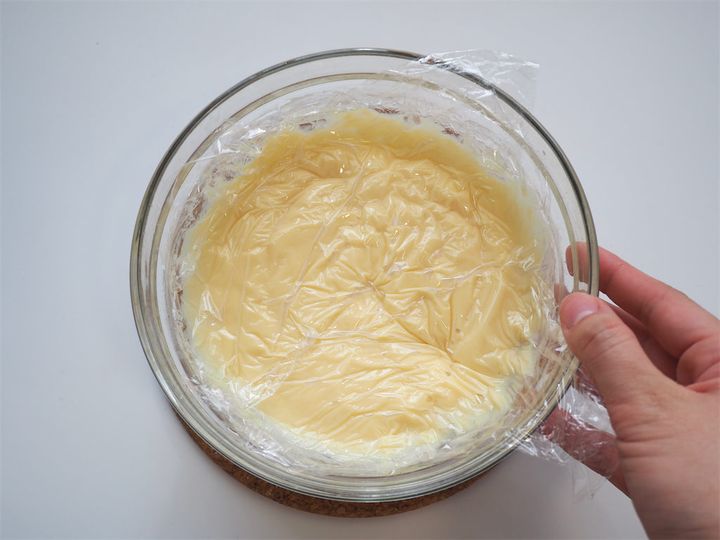 カスタードクリームに、ピタッとくっつけてラップしましょう。