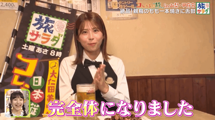 『旅サラダ』で運命的出会い 日本一ビール&焼き鳥が似合う女子アナ!?「暑さも吹き飛ぶべらぼーなかわいさ満点」の声