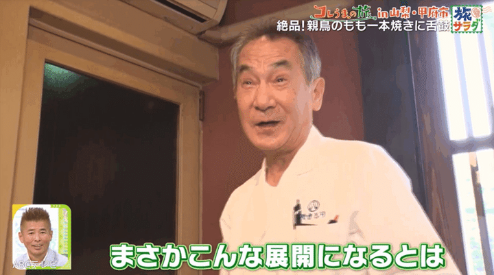 山梨県甲府市にやってきた大仁田アナは、名物グルメの聞き込み調査で、創業70年の焼き鳥の老舗・丸八やきとり 平和通り店を地元民から教えてもらった。実は大仁田アナは、その丸八やきとりの店主兼専務と午前中に出会っており「これも何かの縁」ということで連絡してみることに。取材はOKとのことで、さっそく店へ向かった。