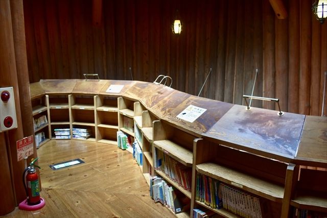 2階は図書コーナーになっており、自由に児童書や絵本を手に取って読むことができます。自然に囲まれた中で静かに本を読む時間もまた格別です。