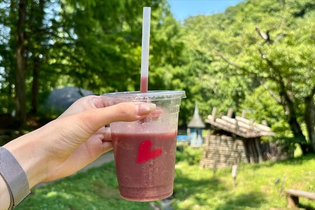 夏のおすすめメニューは、ひんやり爽やかな「フルーツフローズンスムージー」。グァバ、マスカット、アサイーミックスの3種類があり、軽やかな甘さとフルーツの酸味が暑い日にぴったりです。散策後のクールダウンにもおすすめ!