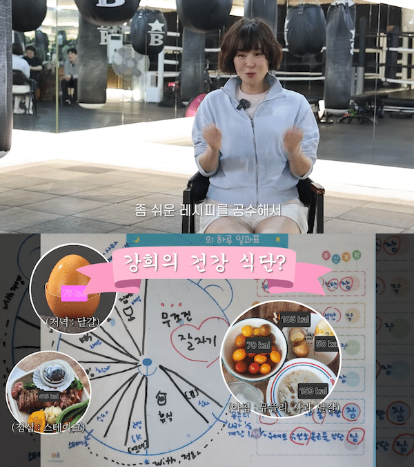 実際に公開されたチェ・ガンヒの食事内容は、朝食はミューズリー、リンゴ、ゆで卵、昼食はステーキ、夕食はゆで卵を添えた高たんぱく中心のメニューで構成されており、注目を集めている。