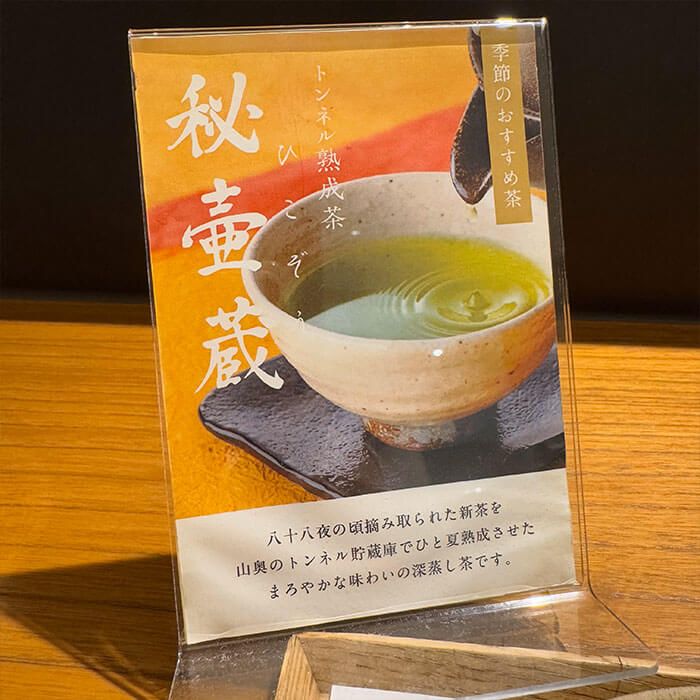私は季節のおすすめ茶「秘壷蔵(ひこぞう)」をチョイス。