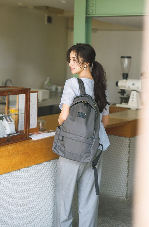 トレンドのグレーリュックが通勤ルックの格上げにお役立ち!