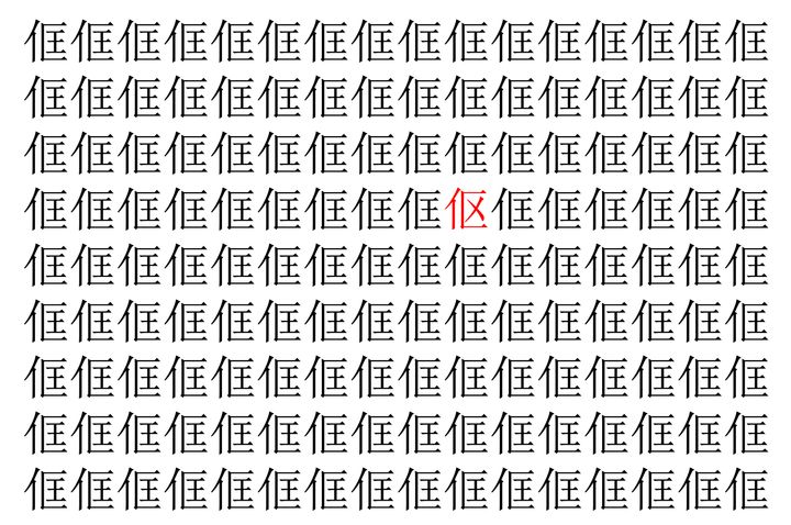 2. 【脳トレ】「㑌」の中に紛れて1つ違う文字がある!?あなたは何秒で探し出せるかな??【違う文字を探せ!】