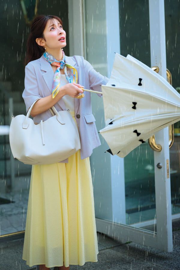 きれいめな華やかなJKスタイルで突然の悪天候にも挫けない!