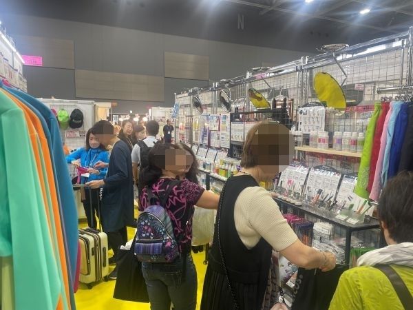 到着した時の展示ブースは、若い人だけでなく幅広い年齢層の方々で溢れていました。 普段はネット上で、個々の商品を眺めるだけですが、ここでは多くの商品を手に取って比較できるのが最大のメリットです。 皆さん、積極的に商品に手を伸ばしています。 それにしても色鮮やかな商品の数々、とても明るくポジティブな感じが良いです。