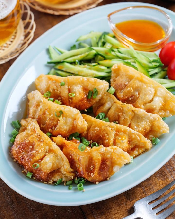 お好みの皮で餃子から手作りするのもいいですが、チルドや冷凍の餃子でも全然OK。