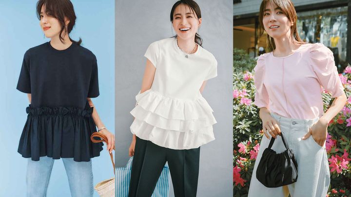 何枚でも欲しい白Tシャツは 3段の甘口フリルのボリューム感で キレイめコーデにもフィット