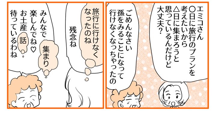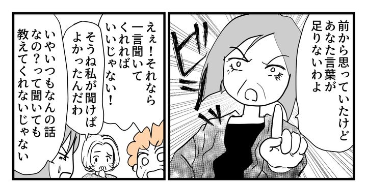 「……エミコさん、前から思っていたけれどあなた言葉が足りないわよ」「いつもなんの話なの? って聞いても『察しが悪い』とか『そんなの聞かなくてもわかるでしょう』って言って教えてくれないじゃない」楽しみにしていた旅行当日……旅行には参加できないし、お友だちには思わぬ指摘までされてしまったのです。