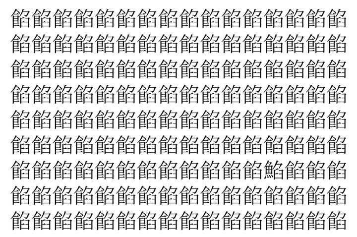 【脳トレ】「餡」の中に紛れて1つ違う文字がある!?あなたは何秒で探し出せるかな??【違う文字を探せ!】