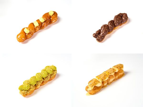 (左上から時計回りに)ソルティッドキャラメル、アーモンドチョコ、ピスタチオ、コーンクリーム
