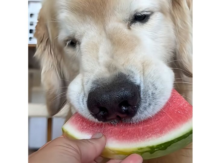 3. スイカをバクバク食べるゴールデンレトリバーさんが可愛すぎて癒される!