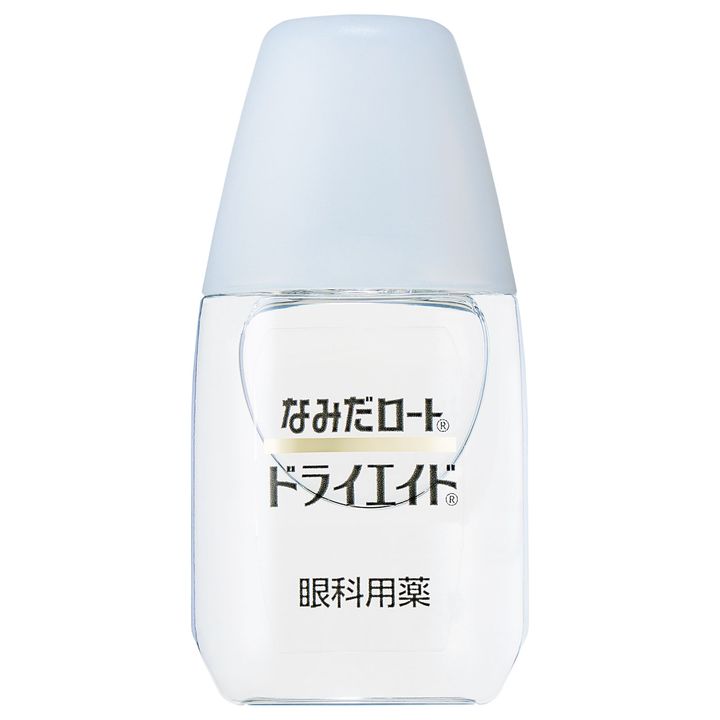「ゴマ油、ベルガモット油、ペパーミントオイルが含まれ、涙に油分を補給し瞳にとどまりドライアイ予防が期待できます」。なみだロート ドライエイド[第3類医薬品]10ml ¥1,320(ロート製薬)