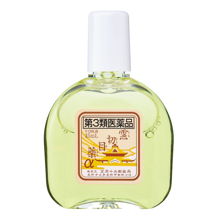 「冷やして炎症を鎮める効果のあるオウバクという生薬が充血に効くとされています。ほとんどが生薬成分で長年愛されている目薬」。雲切目薬α[第3類医薬品]15ml ¥1,320(笠原十兵衛薬局)