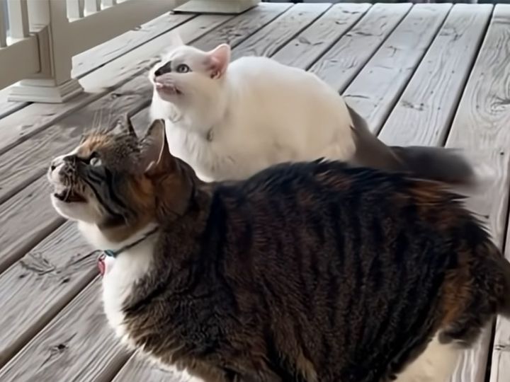 3. 同じ方向を見つめて「カカカッ!」息ぴったりな仲良し猫たちの共鳴タイム