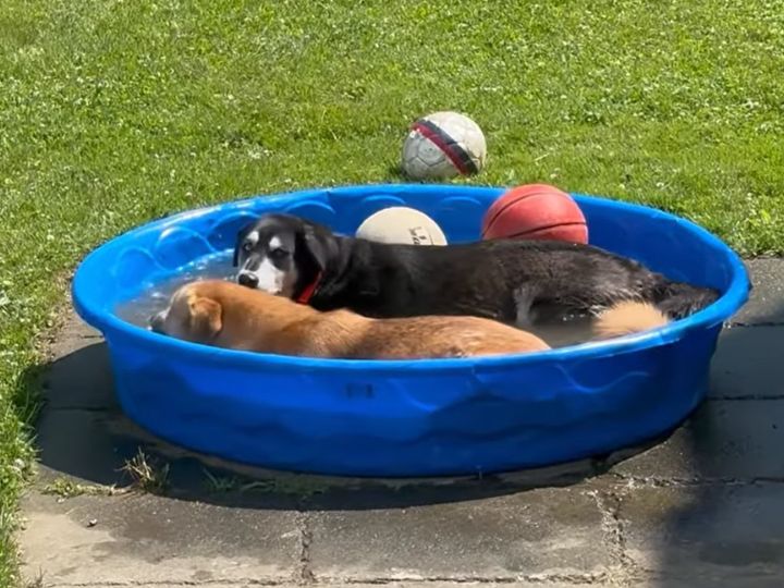 ふたり並んで半身浴 水の中で癒しを共有する仲良しな犬さんたち