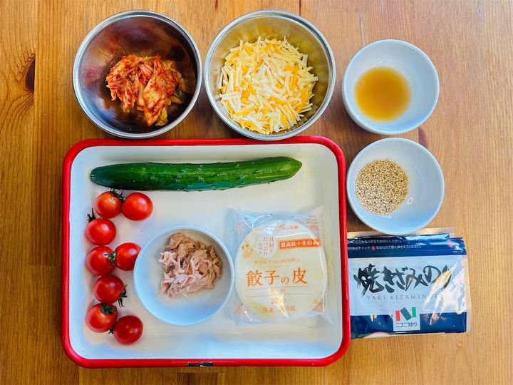 突然ですが、餃子の皮って冷蔵庫の中で中途半端に残りがちですよね。そんなときの救済レシピを佐賀県の農家から教わりました。なんと、餃子の皮をフライパンに敷き詰めて、超薄焼きピザを作るんですって!具材はきゅうりにツナ缶…さらに、ピザソース役はキムチっていうからなかなか変わり種(笑)。ちょうどわが家にある材料だけで作れそう。さっそく試さねば♪