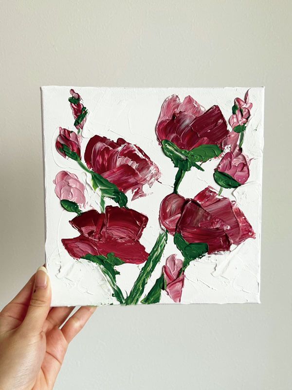「小さなキャンバスにお花を描いてみました! まだ練習中の作品なので少し恥ずかしいですが…(笑)。
